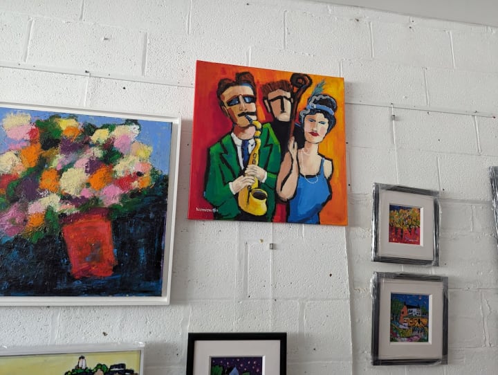 I dropped into Bernie in Studio 28 and the pieces that really caught my eye were the jazz player ones. Bernie is a music fan but not a jazz fan, but was treating this as just another working day, so was painting but still had time to talk and show me his work.