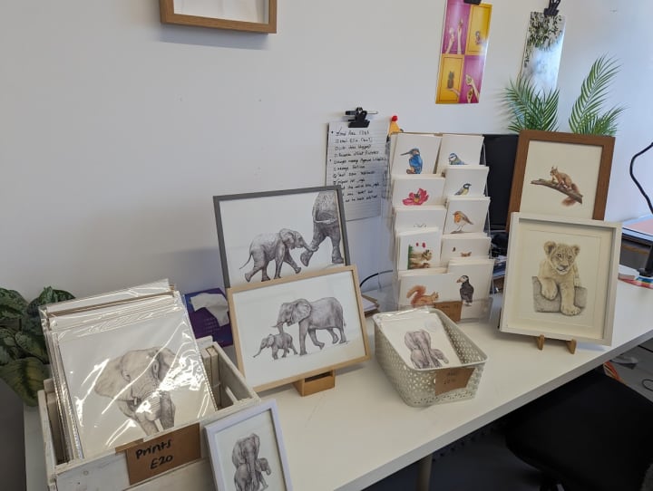 The next artist I found was Laura Mary. She is a wildlife artist and has produced some beautiful animal artwork, including a calendar. She offered me chocolate biscuits but we chatted so much that I left with sampling her chocolate biscuits.