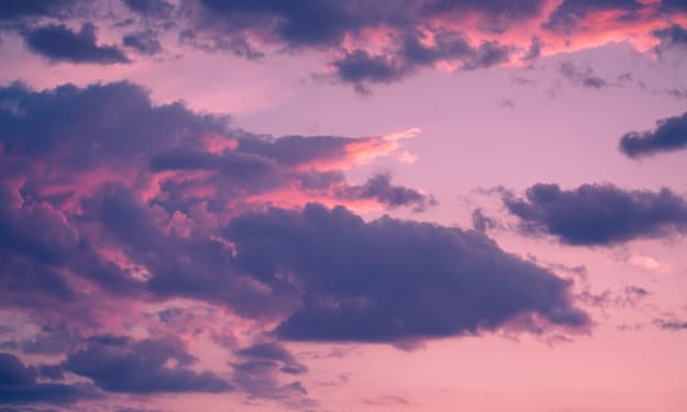 Every night at midnight, the purple clouds came out to dance with the blushing sky. Their existence proved the life you still held in your hands. They say you never know when you die, for your existence will be virtually unchanged in this place. Yet, the magnificent purple clouds are the only sign of life versus death. I gazed up into the purple whimsical clouds every night for twenty-eight thousand, eight hundred thirty-seven nights. I still remember them vividly.
