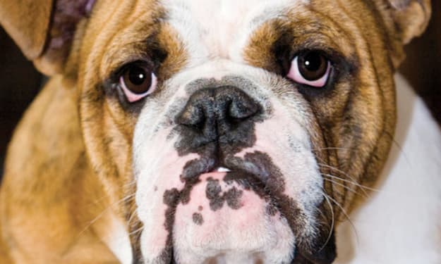 The Bulldog, often called the English or British Bulldog, is a well-known dog breed from England. It's famous for its unique look and gentle nature. This medium-sized dog weighs between 40 to 55 pounds (18 to 25 kg) and has a muscular build. One of its standout features is its large head with loose skin folds around the face and shoulders. The Bulldog's short, flat face and noticeable underbite give it a distinctive appearance.