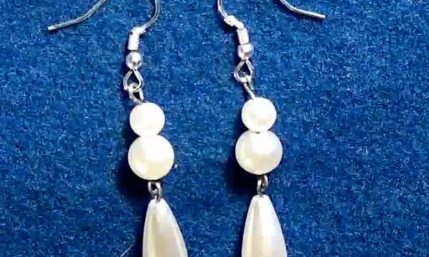 Making a Pair of White Pearl Wedding Earrings