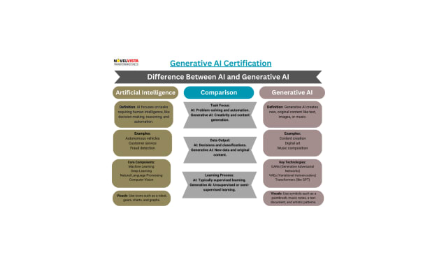 Artificial Intelligence (AI) has become one of the most transformative technologies of our era, revolutionizing industries and reshaping how we live, work, and interact. In variety of applications AI can found like, from autonomous vehicles to smart personal assistants like Siri and Alexa. Among the many branches of AI, Generative AI has recently gained significant attention due to its ability to create new Art, original content. While AI and Generative AI are closely related, they have distinct features, applications, and mechanisms that differentiate them.