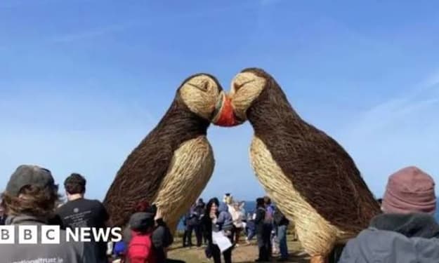 Quiz of the Week: How Tall Are These Puffins?. AI-Generated.