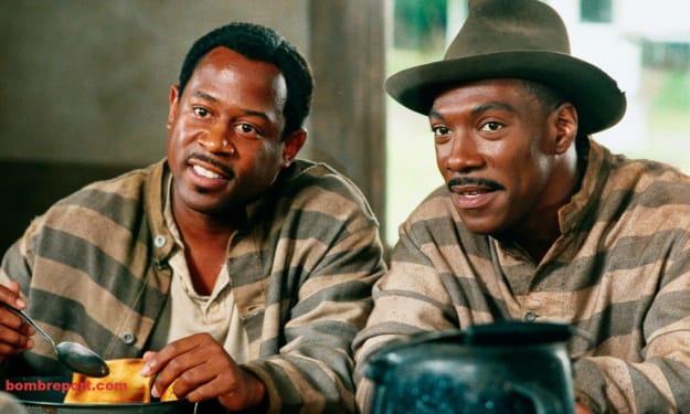 Unlike B.A.P.S, there was a film called "Life", a 1999 film that starred comics Eddie Murphy and Martin Lawrence in a comedy buddy film about two men wrongfully convicted of murder and sentenced to life in prison. While they were in prison, they befriended each other and other inmates in prison as well. This film received 52% rotten tomatoes. I watched the film for the first time and honestly, the rating could've been better. Here's why.....Now this isn't the first film Eddie and Martin worked on the two comic duos had worked on Boomerang.