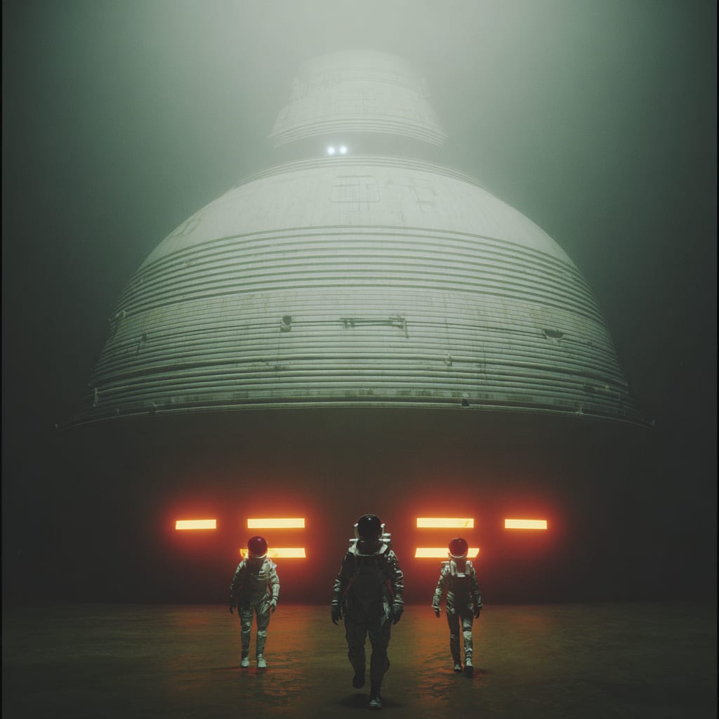 “The moon groans when the lights go out. That’s how you know the Night Fetchers are close—by the labored breaths of the dark, by the way the floor panels tremble like seismic waves. They tell us to stay still, to make no sound. But last night, through the slit in the bulkhead, I saw something worse. I saw myself walking outside, helmet cracked, waving me closer.”