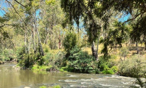 Beyond my closed eyelids are dark hues of red blinkered with black as I drift down the river. I bask in the peace of the dappled sunlight hitting my face. The soft sting of the Australian sun on my skin, touching every inch of my body. I hear nothing but soothing sounds of the river stream and birds chirping, the earth feels silent.