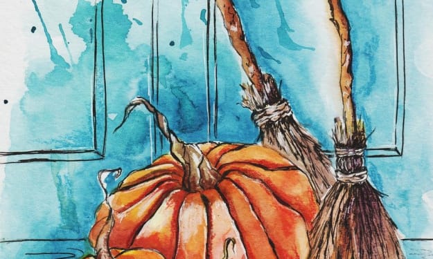 Outside the door On the floor Along the wall The decor of Fall Witches’ brooms Sitting midst mum blooms By every door and step