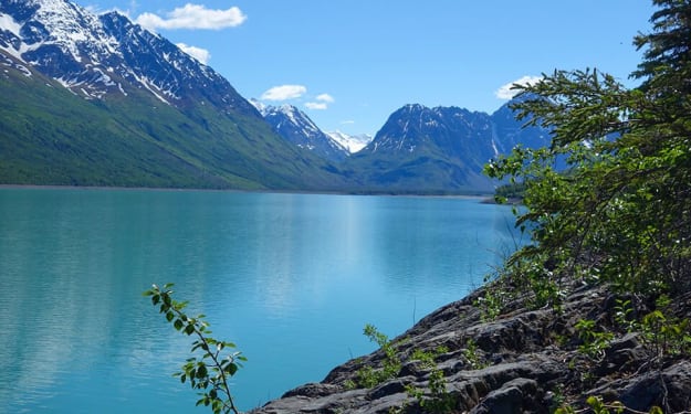 An hour north of Anchorage, Alaska you can find the beautiful Lake Eklutna with over fifteen miles of shoreline. This lake is one of the clearest lakes in the US located right next to the Eklutna Glacier. This lake is a great place for salmon and trout fishing. You can enjoy picnicking by the lake and even stay overnight at a campground. If you like you can go boating on the lake and from the boathouse you can rent kayaks. If you like biking there is a trail running parallel to the lake.