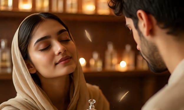 There was something unmistakable about the way she entered the café—an aura that made people lift their heads before even seeing her. It wasn’t her clothes or her walk. It was her scent. Warm, floral, and nostalgic. Like spring had bottled itself into her skin. Arman noticed it the first time she walked past his table. He was sketching people for a design project, but her fragrance struck a deeper chord. Something about it reminded him of his childhood—jasmine vines in his grandmother’s courtyard and his mother’s shawl after Eid gatherings. He didn’t see her face that day. But the scent lingered. Arman returned to that café every Thursday. Not for coffee. For her. The woman he named *Mehak*, the Urdu word for fragrance. She always ordered chamomile tea and read poetry in the corner seat, alone. He was too shy to approach.He began sketching her scent—yes, her scent, not her face. Petals swirling into human form, light weaving into shape. With every drawing, he layered a part of himself. His grief over his late mother. His longing for connection. His belief in something magical. One day, he noticed she wasn’t reading. Just staring into her cup, lost. That’s when he walked over, hands slightly trembling. “Excuse me,” he said, “This might sound odd, but your fragrance… it reminds me of home.” She looked up, startled at first. Then she smiled, gently. “You’re not the first one to say that.” “I’ve been drawing it,” he added quickly. “Would you like to see?” She nodded. He showed her his sketchpad. Her eyes widened as she flipped through the pages filled with petals, stars, and hints of her essence. “These are beautiful.” “That’s how you feel to me. Like jasmine and memory.” She extended her hand. “I’m Zara.” “Arman.”Layers of a Fragrance Their conversations deepened over the following weeks. Arman learned Zara worked in a perfumery. She was experimenting with scent therapy for trauma patients. “Smell bypasses logic,” she explained. “It goes straight to emotion. Sometimes, a scent can do what words can’t.” Zara confessed her mother had passed away the previous year. Creating the fragrance she wore—jasmine, rose, and sandalwood—was a way to carry her memory. Arman shared his own loss. In their pain, they found a quiet, comforting understanding. But there was more. One evening, Zara admitted something strange. “This fragrance I wear... I didn’t create it. I found an old vial in my mother’s chest. No label. Just a date carved on the bottle’s base—June 6, 1998.” Arman’s breath hitched. “That’s the day my mother died.” They sat in stunned silence. A memory stirred—Arman, a child, leaning against his mother’s sari as a woman visited them. She brought food and hugged his mother tightly. Her scent had been unforgettable. Could it be Zara’s mother? The mystery tugged at them. They dug through old photos, letters, and scent samples. Eventually, they confirmed it. Their mothers had been childhood friends, separated by life but bonded by scent. Zara’s mother had created the perfume for Arman’s mother—her final gift.The Scent of HealingZara and Arman collaborated to recreate the fragrance, naming it Yaad—memory. They introduced it through Zara’s perfumery, offering it to people mourning loved ones. The response was overwhelming. Each person said it felt like a hug from someone they lost Arman also hosted an art exhibit titled Fragrant Woman displaying his sketches and scent-inspired paintings. Zara stood by his side. Their love had blossomed slowly, quietly, like perfume settling on skin. It wasn’t loud—but it lingered. On the day of the exhibit’s closing, Arman proposed—not with a ring, but with a bottle. “I made this,” he said. “It’s not a fragrance. It’s a vow.” Zara opened it. The scent was soft, fresh, familiar. “This smells like… us.” He nodded. “A new memory. For our next chapter.” Chance encounters sparked by scent and memory Emotional connection through shared grief and healing The mystery of their mothers' past and the forgotten vial The inspiration of turning loss into art and therapy !