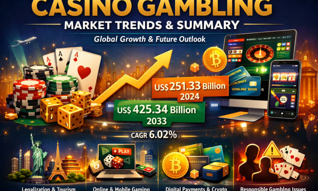 Global Casino Gambling Market: A High-Stakes Industry on the Rise The global casino gambling market is undergoing a powerful transformation, driven by legalization, digital platforms, changing social attitudes, and a surge in tourism-led entertainment spending. According to Renub Research, the casino gambling market is expected to grow from US$ 251.33 billion in 2024 to US$ 425.34 billion by 2033, registering a CAGR of 6.02% from 2025 to 2033.