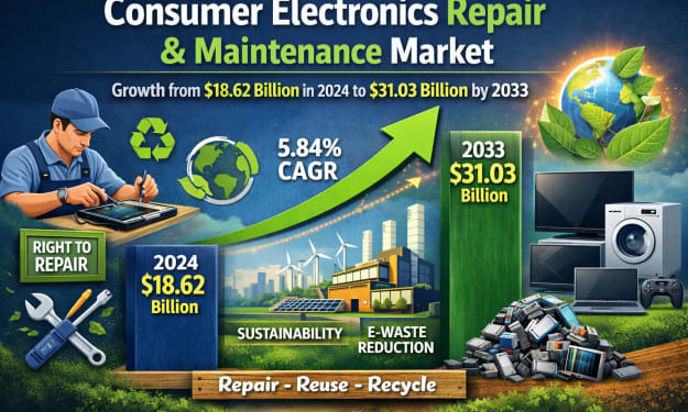 Global Consumer Electronics Repair and Maintenance Market: An Industry on the Rise The global consumer electronics repair and maintenance market is gaining strong momentum as consumers, businesses, and governments rethink how electronic devices are used, maintained, and disposed of. According to Renub Research, the market was valued at US$ 18.62 billion in 2024 and is projected to grow steadily to US$ 31.03 billion by 2033, registering a compound annual growth rate (CAGR) of 5.84% from 2025 to 2033.