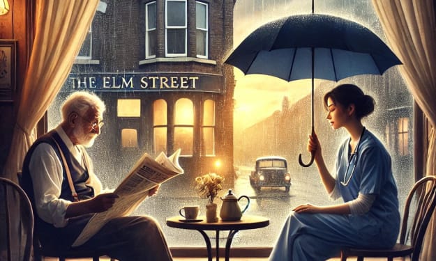 It was a rainy Tuesday afternoon. The rain fell hard, making the streets shiny and wet. People rushed inside the coffee shop on Elm Street to stay dry. The shop was warm and cozy, filled with the smell of coffee and the sound of people talking.