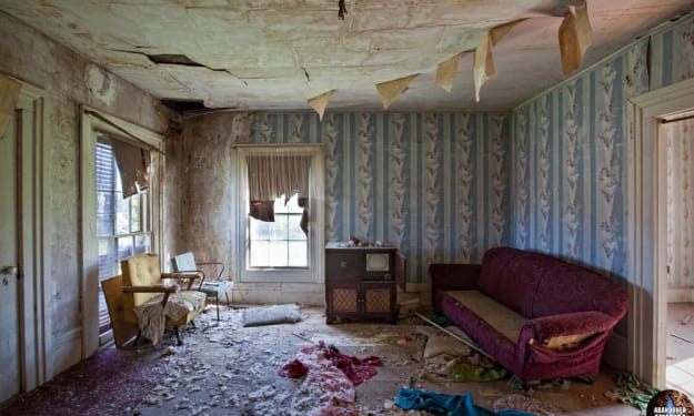 Honeysuckle wraps the rafters like yellow hands Gripping at the wet, dripping posts And a bruised flower pops up from the floor