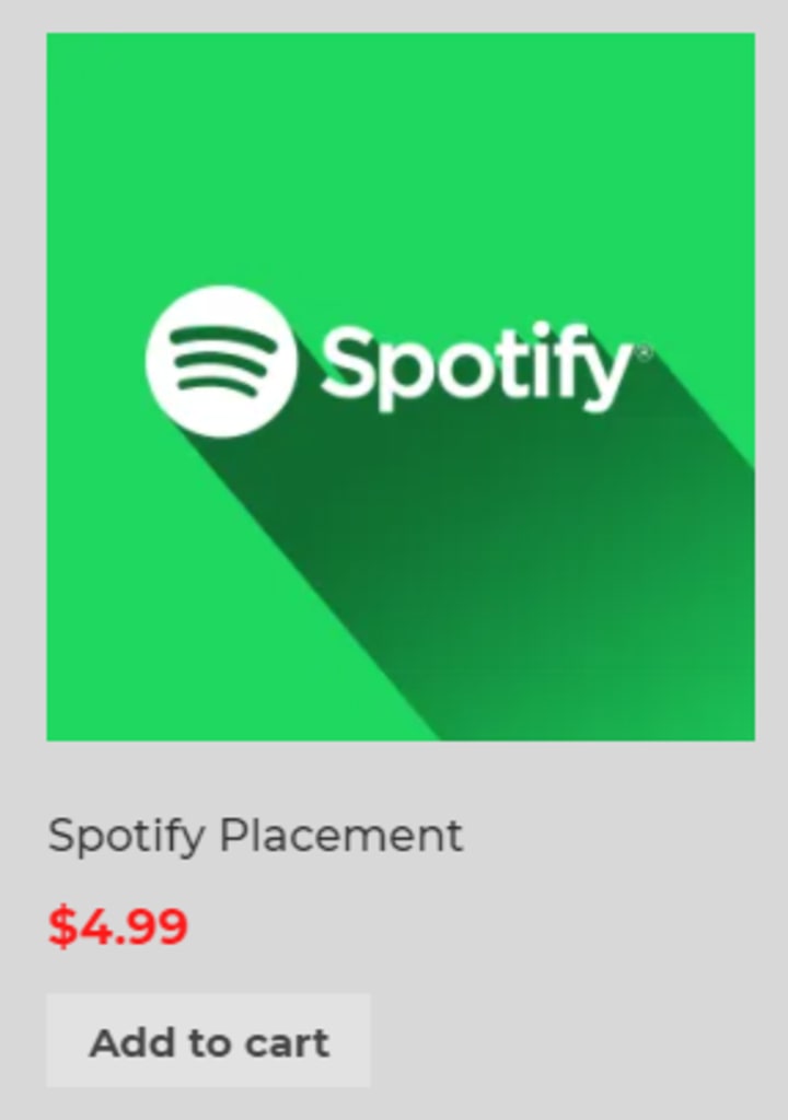 Would you like to add some Spotify placement to your cart? Nope, I really wouldn't. $4.99 is the cheapest offering yet but remember folks. You're breaking the rules if you pay for any of these services.