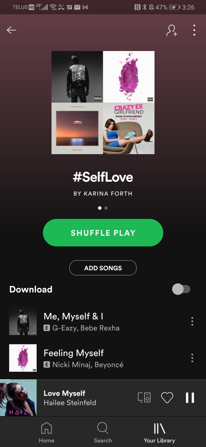 Here's the other catch, you actually aren't going to be alone today! You got music...and more importantly you got MY playlist to guide you and help you embrace loving your single self! I don't need to explain much what music does to our souls, we all know already, it is just amazing. Music decorates time and space and makes you feel anything. So I make playlists that bring me on a journey to whatever theme I am focusing on. It can't just be any songs thrown together too and on shuffle! Oh my; I don't joke around, I take this as a serious art. I want you to experience what I do and let the music bring you on an adventure like you paid for this!