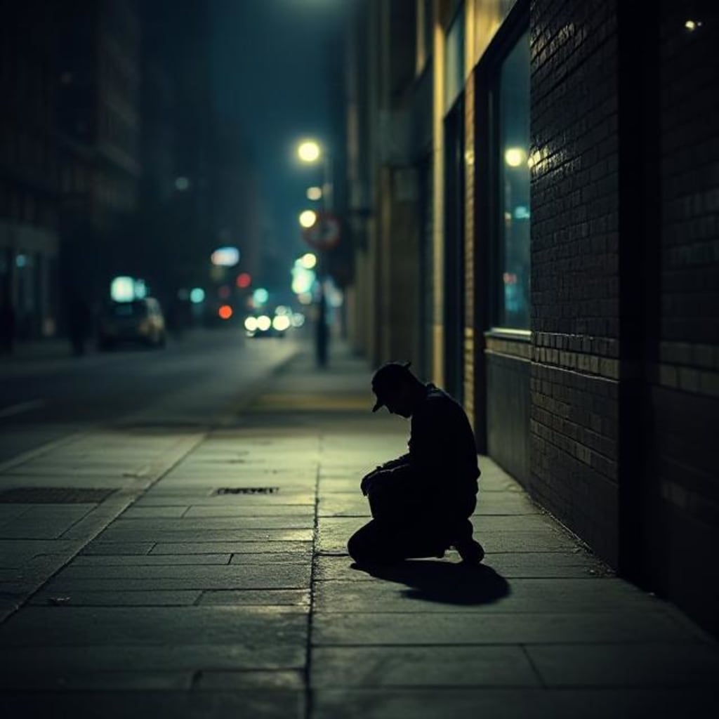 A homeless man sat hunched on the corner of the sidewalk, bundled in torn layers, clutching a plastic cup that held less than a dollar in coins.
