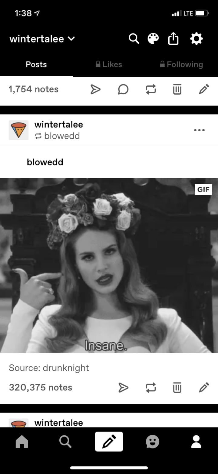 So, based on the first memory that I can drag out of my mind from around the beginning of eighth grade, this is the first song that comes to mind. This song and its artist were very influential to me during my "Sad Girl Years" as I like to call them. The Sad Girl Years was basically a long period of time where I seemed to be obsessed with being...well...sad. It probably sounds horrific, especially in the wake of the world's condition today. Happiness today is something people WANT to grasp onto because we all know how fleeting it can be. However, from the ages of 13 until about 16, I enjoyed my sadness. I was obsessed with the grungy, angsty, dark, sad girl aesthetic. If my mother had let me get an uneven haircut and bleach my tips and dye them blood-red, I would have done it. The combat boots, flannels, and exaggerated side bang? That was me. The obsession with bands like P!ATD, BMTH, and more? Also me. The blocky black eyeliner, dirty Converse, and wearing long sleeve shirts year-round because you-know-why? Unfortunately, all me. There was an awful trend of romanticizing sadness, depression, and pain to make it "cool", and I regret to say that this trend was the aesthetic I chose for my early teen years. I even have the Tumblr account to prove it: