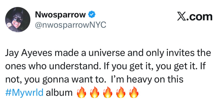 The Evolution of Jay Ayeves Reaches Full Form on My Wrld by NWO Sparrow