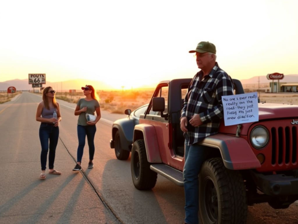 Then, without warning, her Jeep coughed like a smoker on his last cigarette. The dashboard lights blinked in protest, and the engine died with a dramatic sigh. Emily pulled off to the dusty shoulder, her heart sinking as silence replaced the hum of motion.