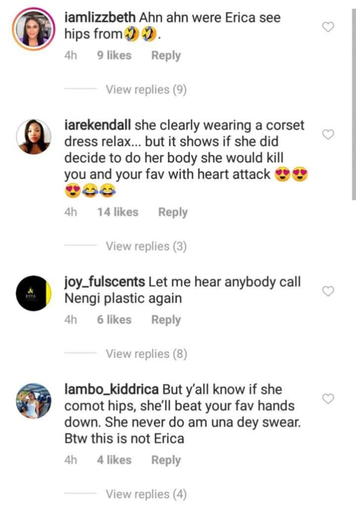 Immediately, people in the comments section were in a frenzy, many unable to believe that it was Erica in the picture and others insisting that she had gone under the knife.