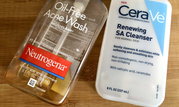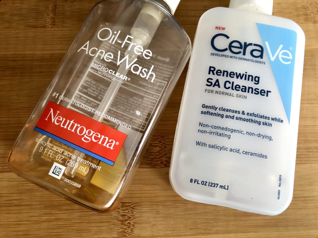 From experience, my dermatologist has always prescribed the golden, golden-yellow toned Neutrogena, with salicylic acid and a duo facial cream and or serum with glycolic acid. Facewashes with salicylic acid are excellent because they are infamously known and revered for unclogging pores and clearing up blackheads. The Neutrogena that I use, has salicylic acid, and I’ll pair it, twice a week, with CeraVe Renewing Cleanser, that has hyaluronic acid and a few other goodies. I also use a moisturizer with glycolic acid, to assist with the unclogging of pores. I also use a serum with glycolic acid, because it is known for assisting with your skin's natural exfoliating and renewing process and it also helps your skin retain and absorb moister. It also helps with reducing blemishes and marks left by pimples.