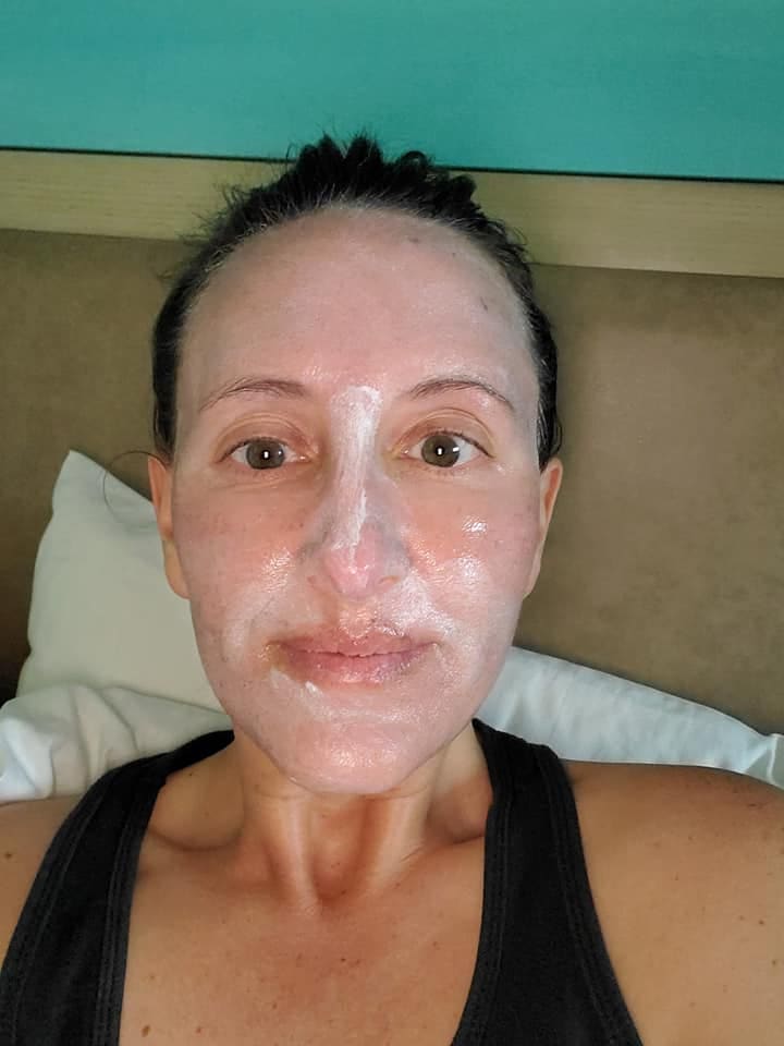 Day two my skin felt foreign to me, sticky. When washing my face I wasn't supposed to rub it, so I ended up splashing my face and the hotel bathroom counter with water.