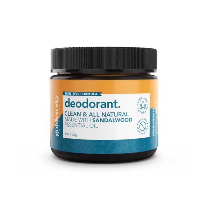 "This version of our ever-popular deo is made for those with slightly more sensitive pits. If you've ever had red, bumpy, and irritated pits -- here's your solution. This specially formulated deodorant has less baking soda and adds Bentonite Clay to leave your underarm skin smooth" (Golden Sky Naturals Website).