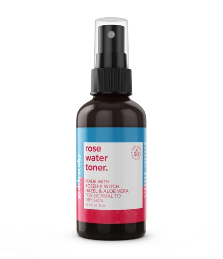 "Toner is the little-known-secret to smooth skin! Don't miss this step if you want that flawless looking face. Featuring the cleansing strength of Organic Witch Hazel coupled with the healing touch of both Aloe Vera Gel and Organic Rosehip infused Distilled Water, the Golden Sky Naturals Rose Water Toner is an essential part of the facial skin care experience" (Golden Sky Naturals Website).