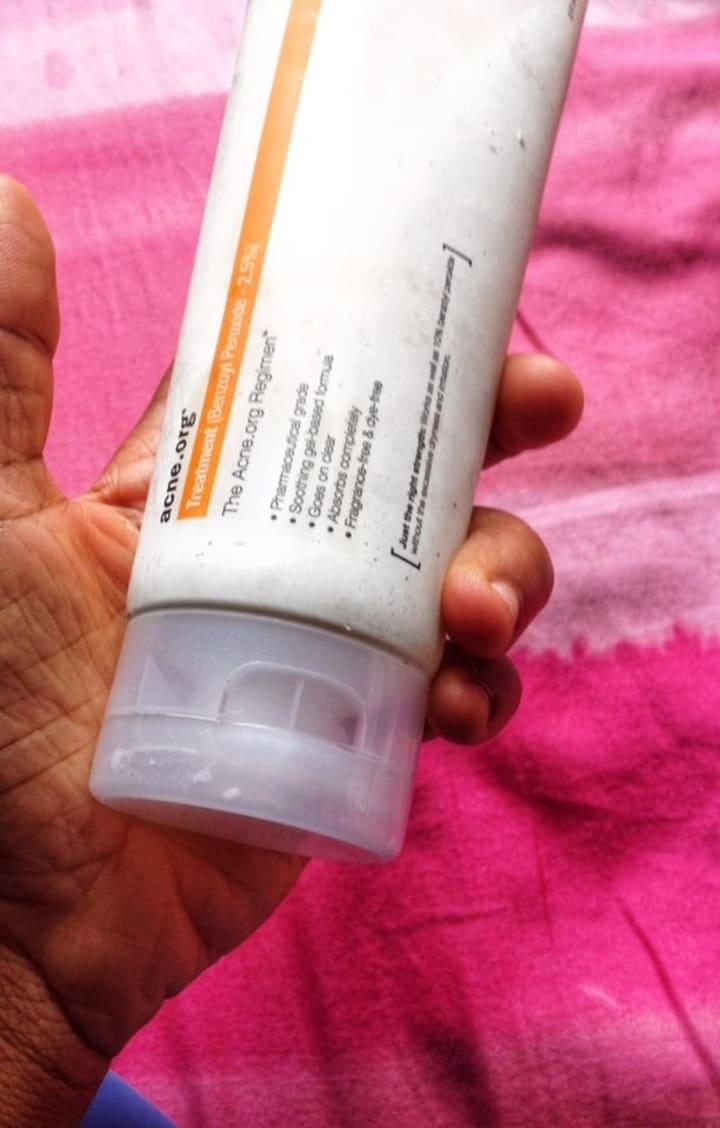 This is optional and used only when I notice spots or pimples popping out. I use acne.org treatment gel which contains Benzoyl Peroxide, an active ingredient that dries them up really fast and is very good. Just apply the gel on the spot where you have acne or pimples.