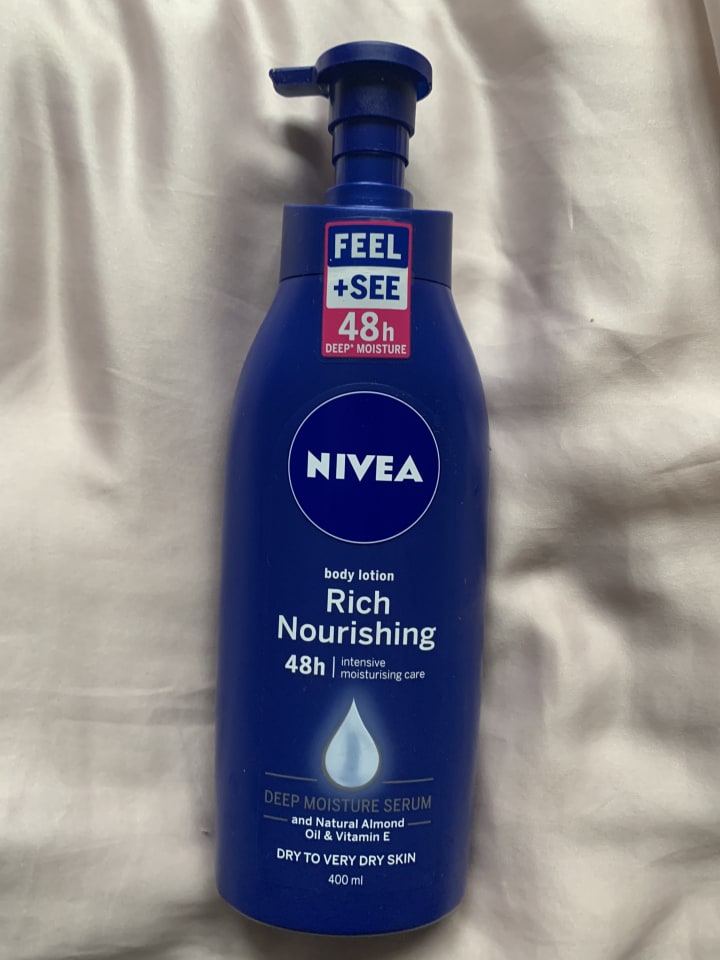 I have really dry skin on my face. Particularly in winter. Nivea Body Lotion does the job for the day.