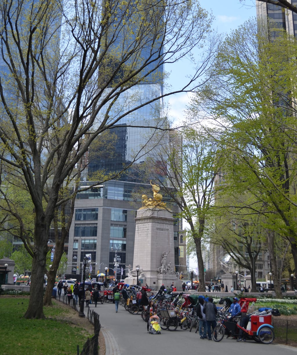 The park is long and narrow, stretching north to south like a pause in the city’s sentence. There are no ornamental pavilions or decorative lakes. Instead, there are basketball courts, handball walls, a running track, and playgrounds filled with children. Pigeons walk freely among strangers’ feet, unbothered and unafraid.