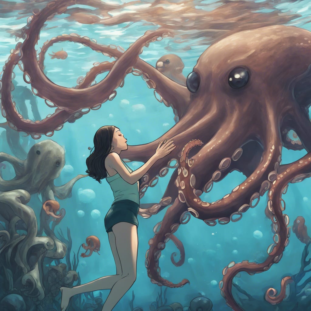 One evening, Evelyn sought refuge in the familiar comfort of the local aquarium. The gentle sway of the kelp forest and the mesmerizing dance of the fish offered a temporary escape. As she approached the octopus tank, a creature with inky skin and intelligent eyes regarded her.
