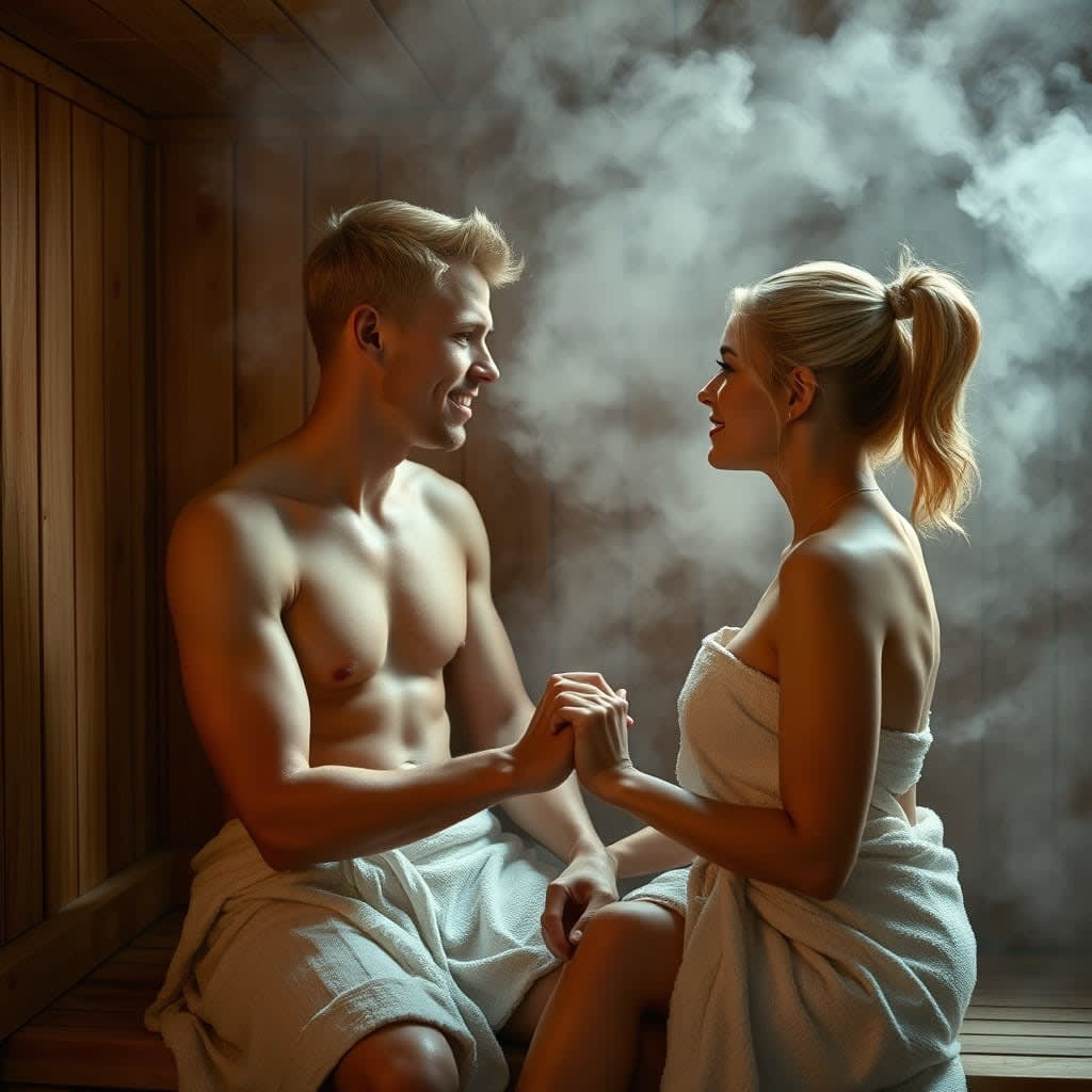 In the sauna back at CAPES headquarters, Oliver and Cass were enjoying the steam.