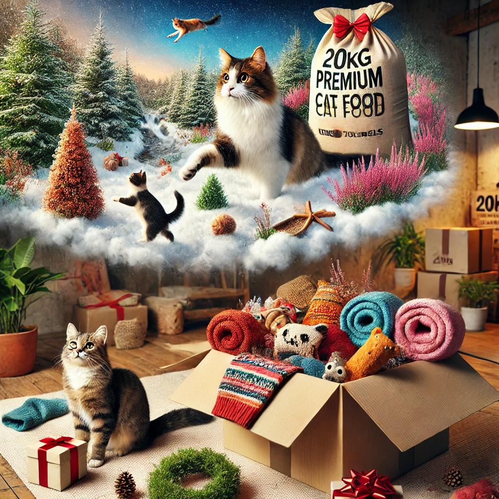 He lays down on the giant's pillow and stretches, falls asleep before licking his paws and is completely uninterested in anything around him this is his world and his rest he flies off into a deep sleep he sees huge 20kg sacks filling the whole guest room and kitchen each of these sacks has top quality food in different flavours and a red bow, to emphasise how gigantic the bags of food really are He feels an Emperor and relaxes even more smiling through in the next phase of sleep he moves to the clouds gets on the softest down cloud cushion and flies away for the nap of the century when he wakes up it will be a whole new day a new dream a new moment a new desire maybe he will even get the urge to play or try on new clothes