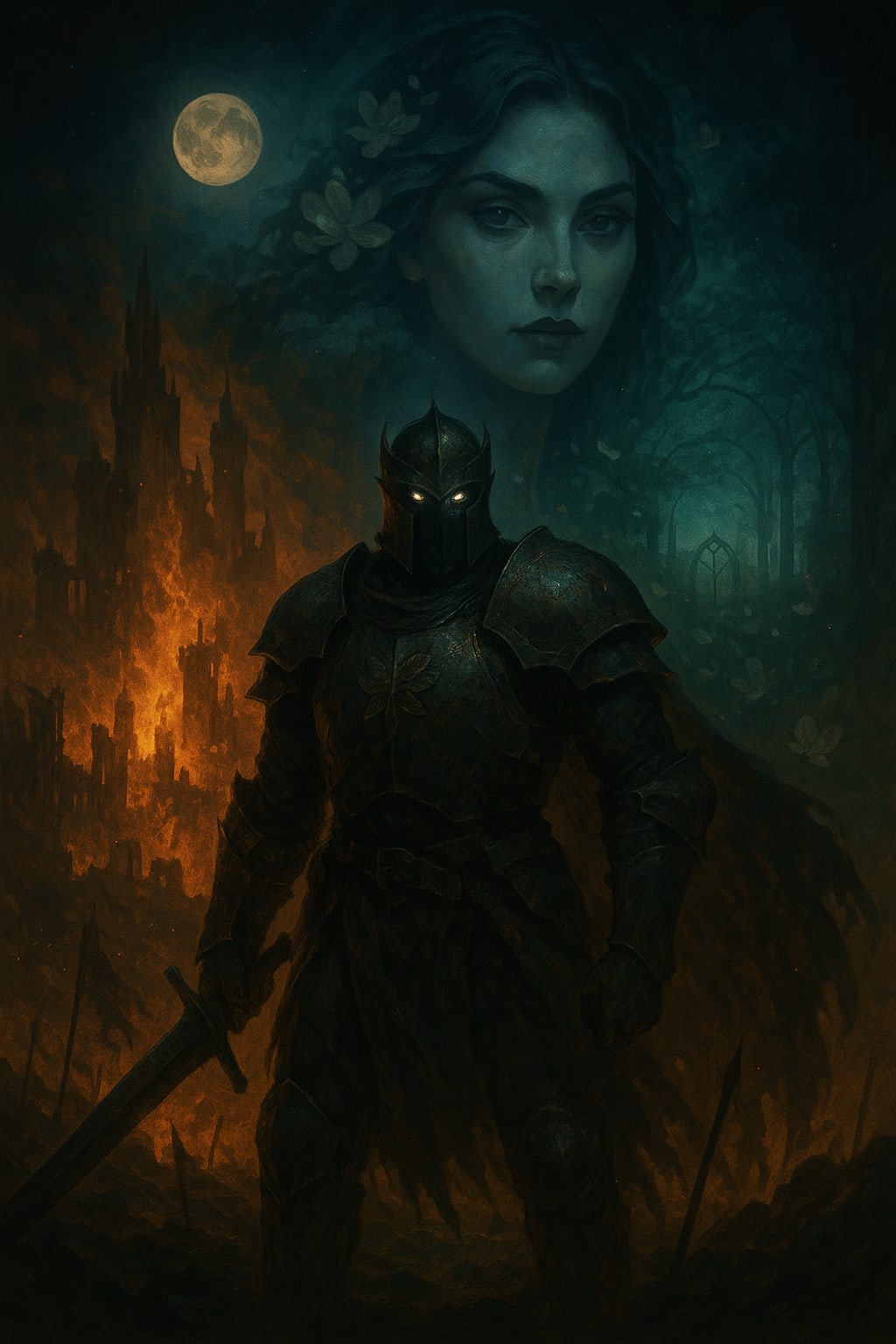 Her hair spilled like liquid shadow, catching the moonlight in strands of silver. The gown that wrapped around her moved like smoke in water, clinging one moment and drifting the next. Her eyes the colour of storms fixed on his, and for a moment Kael felt himself weightless, unmoored, as though the garden’s breath had stolen his own.