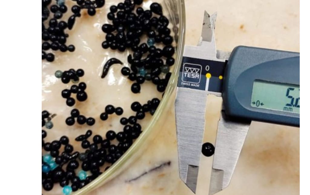 The carbon particles were encased in a stable granule by an edible polymer, a long-chain molecule used to create gels. This layer helps prevent fine carbon dust from obscuring the filtered water as it passes through the cartridge.