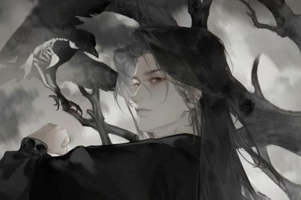 A crimson wasteland spreads endlessly, its surface soaked with the blood of countless fallen. The ground, once sacred, is now a graveyard for shattered swords and torn banners, where twisted bodies lie abandoned, victims of a conflict that has sullied the border between worlds. The mountain that once served as a sanctuary now reeks of decay, its solemn air replaced by the foreboding stench of death. For a moment, the desolation is silent, as if the world itself mourns the desecration. Then, from this eerie stillness, a wind arises, carrying with it the mournful cries of lost souls. Its howl pierces the quiet, sending chills through the air, as though the dead themselves lament their restless state. Amidst this field of carnage, movement stirs beneath a mound of lifeless forms. Suspicion mounts among the onlookers hovering above, their figures silhouetted against a bleak sky. Eyes narrow as they fixate on the disturbance, their readiness palpable, for they know that what lies below is no ordinary survivor. The silence among them speaks volumes, broken only by the intensity of their watchful gazes. From beneath the pile, a figure erupts, cloaked in swirling black mist, his presence immediately commanding. Blood stains his tattered form, concealing all but the sharp, malevolent glint of his eyes. They burn with unyielding hatred, piercing the gloom like daggers. In his hand, a jade talisman pulses with an ominous red glow. Its surface, etched with cryptic symbols in blood and cinnabar, radiates power, its light flickering in defiance of the surrounding darkness.