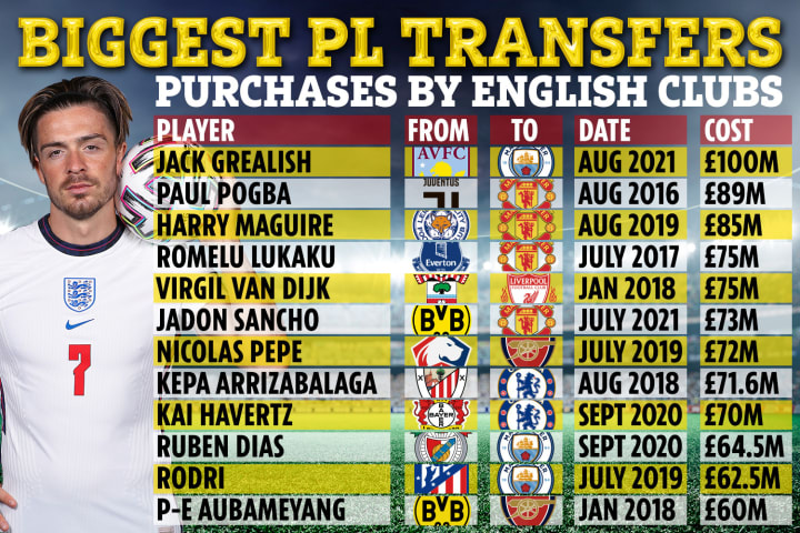 With the recent transfer of Jack Grealish to Manchester city for EPL record transfer fee of £100 million, it's quite evident that big clubs are not shy of spending big on top English talents. And it's not the only transfer that has been perceived as overpriced by many, the transfer of;