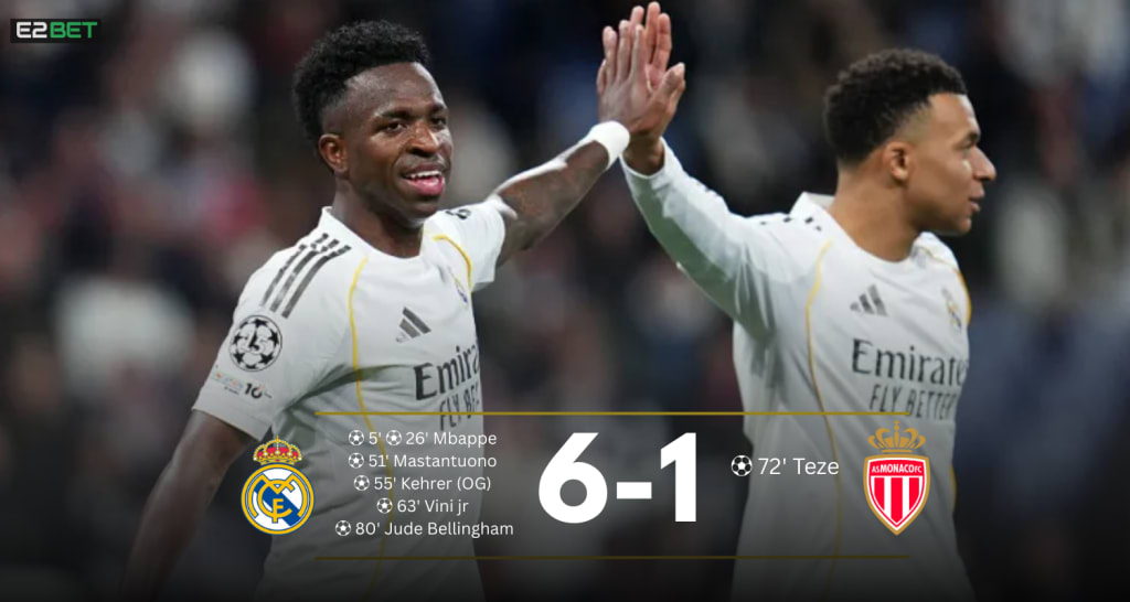 Real Madrid produced a commanding display in the UEFA Champions League with a 6-1 victory over Monaco at the Santiago Bernabeu, powered by Kylian Mbappe and Vinicius Junior. The emphatic win marked Alvaro Arbeloa’s first Champions League match in charge and strengthened Madrid’s position in the league phase as they closed in on qualification for the last 16.
