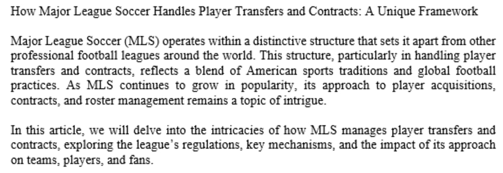 How Major League Soccer Handles Player Transfers and Contracts: A Unique Framework