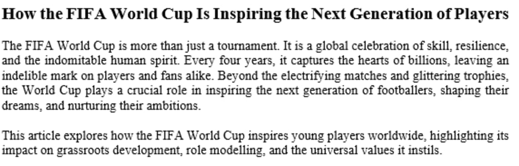 As young footballers lace up their boots and step onto the pitch, they carry with them the aspirations ignited by the World Cup. Through their passion and determination, the legacy of this extraordinary event continues, shaping the future of football and the world beyond.
