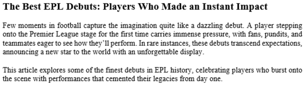 These debuts remind us why we love football, the unpredictability, the drama, and the ability of a single moment to define an entire career. For fans and players alike, the best debuts are more than just games; they are unforgettable experiences that embody the magic of the Premier League.