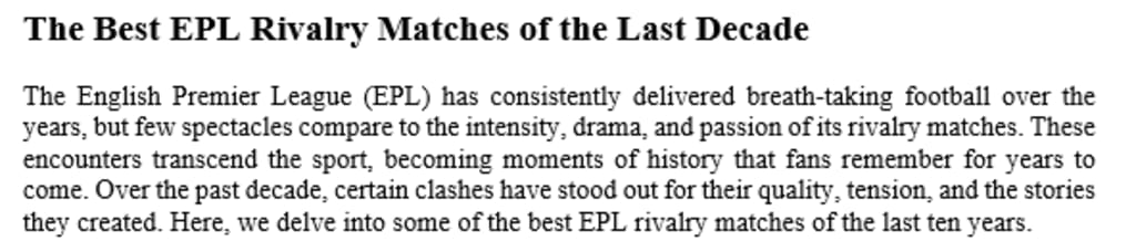 The Best EPL Rivalry Matches of the Last Decade