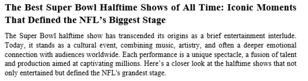 The Best Super Bowl Halftime Shows of All Time: Iconic Moments That Defined the NFL’s Biggest Stage