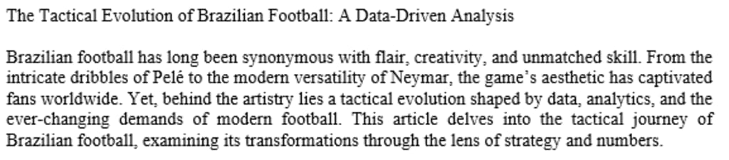 The tactical evolution of Brazilian football reflects its resilience and adaptability. From the free-flowing 4-2-4 of 1958 to the data-driven strategies of today, Brazil has consistently reinvented itself to stay ahead in a competitive landscape.