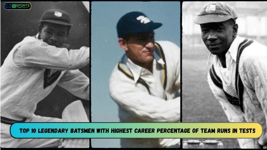 Test cricket has witnessed legends who carried the weight of their team’s batting lineup on their shoulders. Some of these extraordinary batsmen contributed a remarkable portion of their team’s total runs. This record, known as the highest career percentage of team runs in Tests, highlights not just talent but also responsibility. Below, we count down the top 10 batsmen, starting from number 10, who dominated their era and stood tall for their countries.