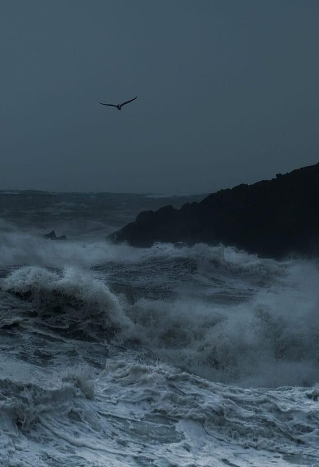 And I sat there by the shore, looking at the sea. It was really cold, and the gloves were barely keeping my hands warm. Most of the time, it was calm and rhythmic, but on that day, something had changed. The color of the water was a deep blue, almost black, and it flowed clumsily and wildly, as if it carried the furious guilt of the world and could no longer bear it. I was staring at the angry, rolling waves as they crashed against the naked cliffs and greedily embraced the shore.