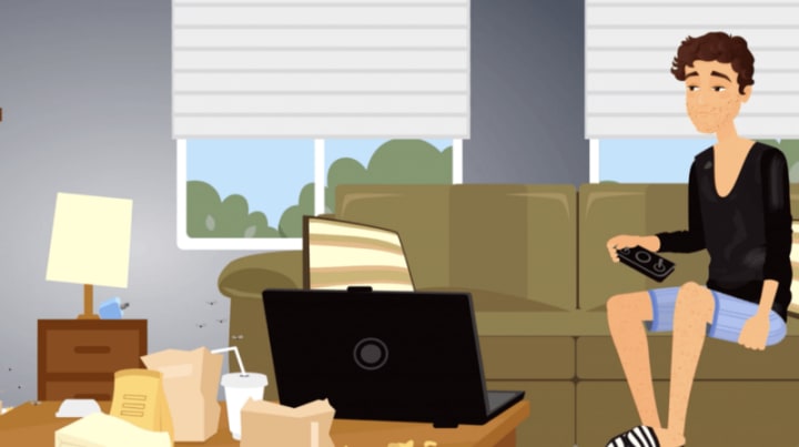 I saw him playing Call of Duty in his boxers and he looked like he hadn't showered for days. I decided to cut straight to the point with him.