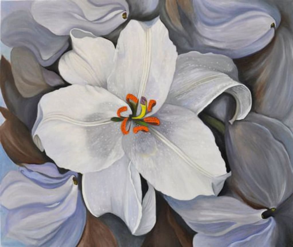 White Asiatic Lily blossom -Chris is an artist in the style of American modernism originated by Georgia O'Keeffe in the early 20th century.