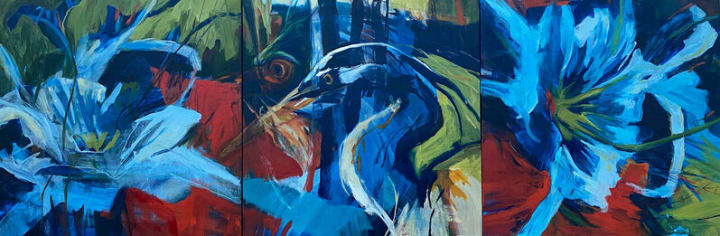 Connie Connally,Spider Lily and Blue Heron, 2023